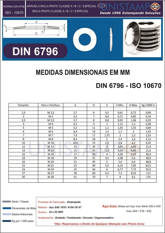 Contate a Unistamp para adquirir a mola prato sae 6150
